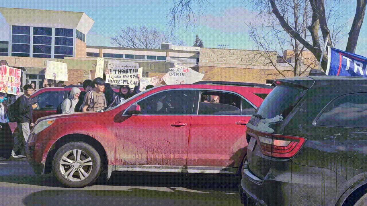 Yesterday at Fremont High School in Nebraska, a high school student was out protesting when an SUV flying a Trump flag struck them and fled the scene.