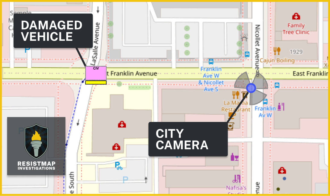 As of writing, the Minneapolis Open Data Portal’s police incidents tracker had not been updated since January 21, 2026, meaning we were unable to identify any reports that way. However, a nearby police camera (operated by Minneapolis PD and provided by Insight LPR) means we have an opportunity to acquire footage of this incident.